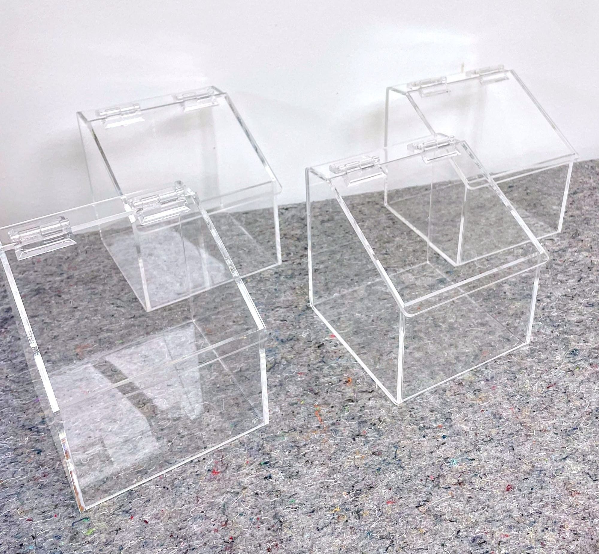 Elevate your retail or food-service setup with our hand-crafted, food-grade acrylic display bins, designed and fabricated in Chicago. These sleek, durable bins feature a crystal-clear 3/16" thick acrylic that offers maximum visibility and long-lasting performance. Perfect for bakeries, cafés, candy shops, grocery displays, hospitality, retail merchandising, and organized countertop storage.